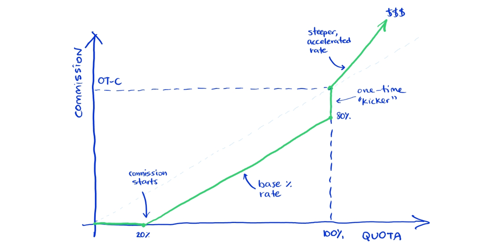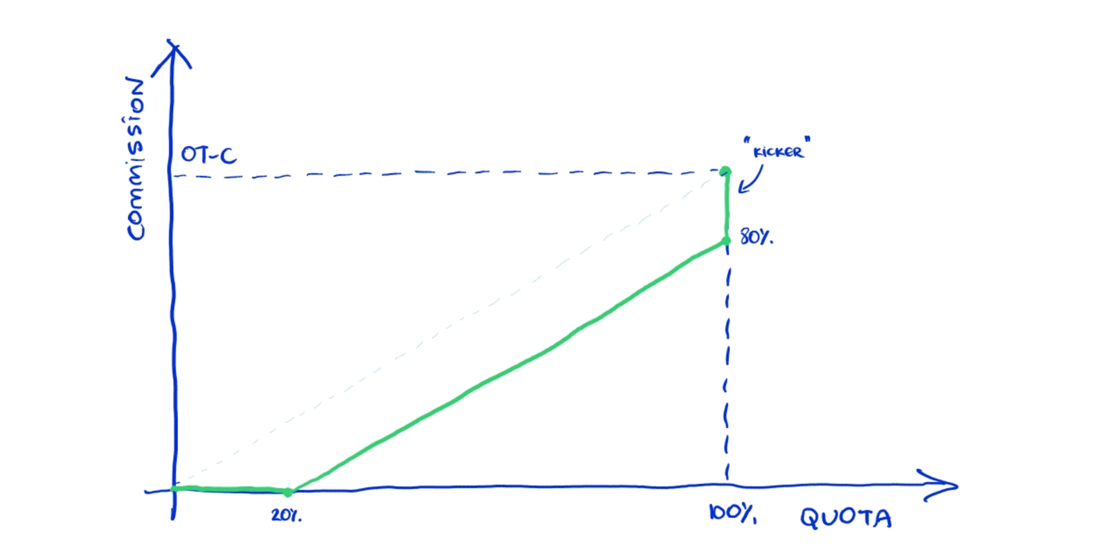 One way to push harder to hit those goals is to withhold a chunk of the OT-C, (10%, if you have to, max 20%), and share it as a "kicker" when the sales rep hits the mark. It adds a sweet, hard-hitting incentive to reach those quotas.